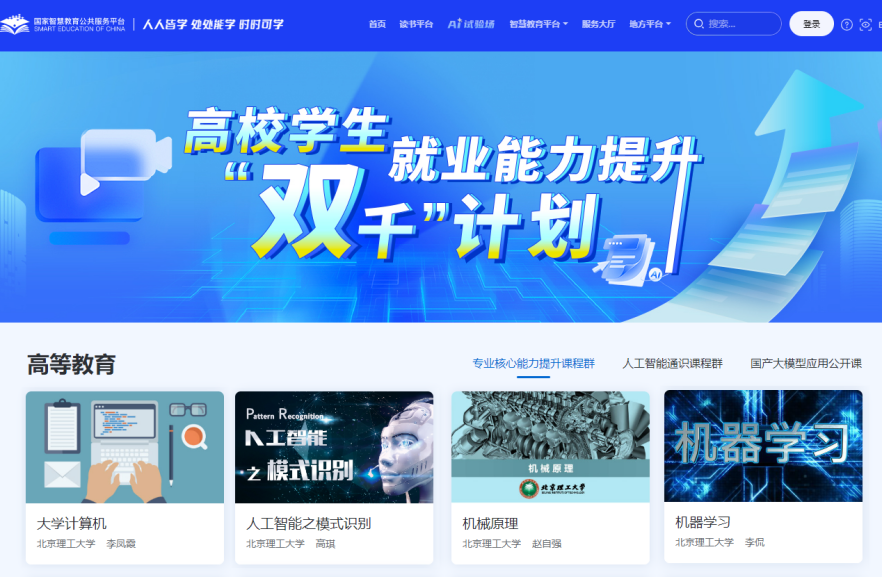 学校积极回应国家重大战略需求、持续深化教育教学综合改革,首批9个人工智能相关“微专业”全部获得教育部入库,10门优质课程入选教育部高校学生就业能力提升“双千”课程名单,正式纳入国家智慧教育平台高等教育板块。
