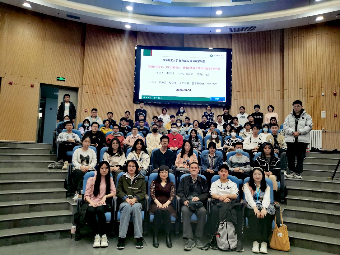 在专家面对面环节,李延明认真耐心地回答了同学们的问题。《我们的老院长党的无线电专家李强》讲座是教务部课题支持建设的系列红色讲座之一,旨在用艺术讲好党史校史,铸牢学生家国情怀。李延明讲座受到了同学们的热烈欢迎,同学们多次用热烈掌声表达了致谢并期待李延明再次开讲。讲座最后全体合影。