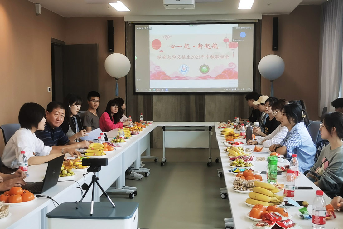 2021年9月18日,延安大学交换生座谈暨2021年中秋联谊会在良乡校区文科组团楼机关楼A404会议室举行。北京成人头条教务部部长薛正辉、党政办主任助理兼综合三室主任曹雪,延安大学教务处处长吕磊、副处长董庆来,以及2020年和2021年延安大学来我校交换学习的学生现场参与,会议采用线下和线上结合方式进行。联谊会由教务部副部长尹力主持。